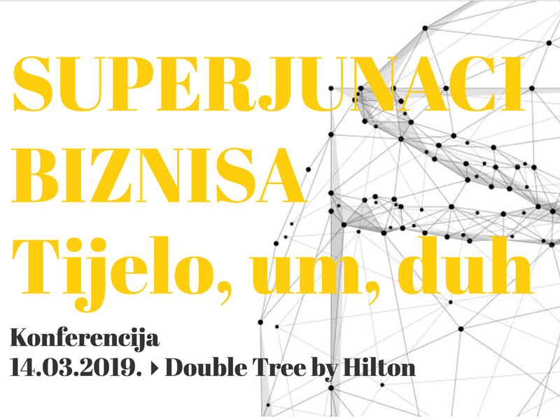 Ukoliko ste se prepoznali u kontekstu vođenja, imate interes proširivati i usavršiti svoja znanja i pojačati umijeće liderstva za vas smo rezervirali sto raspoloživih mjesta na konferenciiji „SUPERJUNACI BIZNISA – Tijelo, um, duh“ koja će se održati 14.03.2019., u Zagrebu, u hotelu Double Tree by Hilton s početkom u 9 sati. Konferencija obuhvaća tri aspekta koja će biti predstavljena kroz predavanja poznatih stručnjakinja iz područja organizacije, biznisa i znanosti, Leu Brezar, Tamaru Kajari i Irenu Brbić.